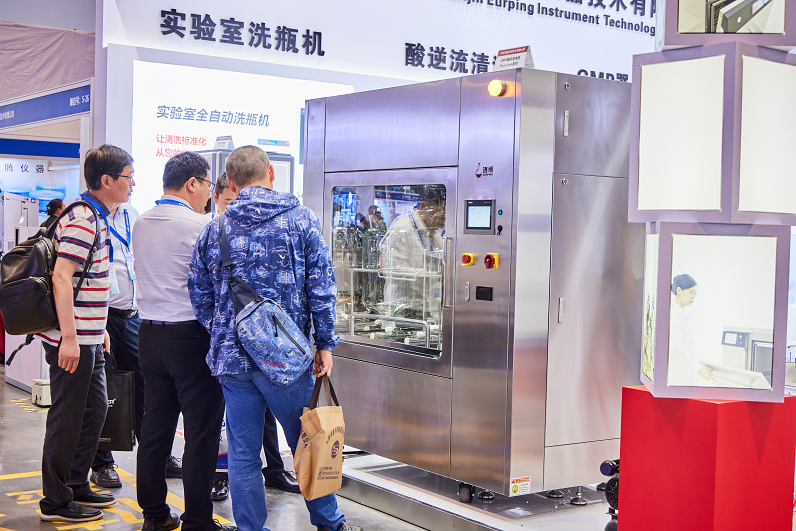 GMP清洗机依旧是吸引了众多参观者驻足,现场观看清洗效果的和问技术问题的络绎不绝,虽则我们对药品质量的要求和检查越来越高,能看出企业对器具的清洗也越来越重视,GMP清洗机能做到从材质到设计再到清洗效果都能达到cGMP要求,是替代人工清洗的好选择。